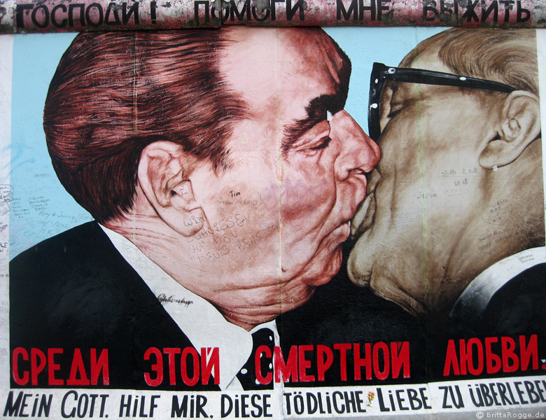 Berliner mauer bruderkuss. Die mauer hier ja die mauer nicht berliner mauer wurde durch. Created in 1990 the painting depicts leonid brezhnev and erich honecker in a fraternal embrace reproducing a photograph that captured the moment in 1979 during the 30th anniversary celebration of the foundation of the german democratic republic. The fraternal kiss german. 87 artists took part and 100 paintings were restored in november 2018 the state of berlin transferred the east side gallery to the property of the stiftung berliner mauer sbm which is thus.