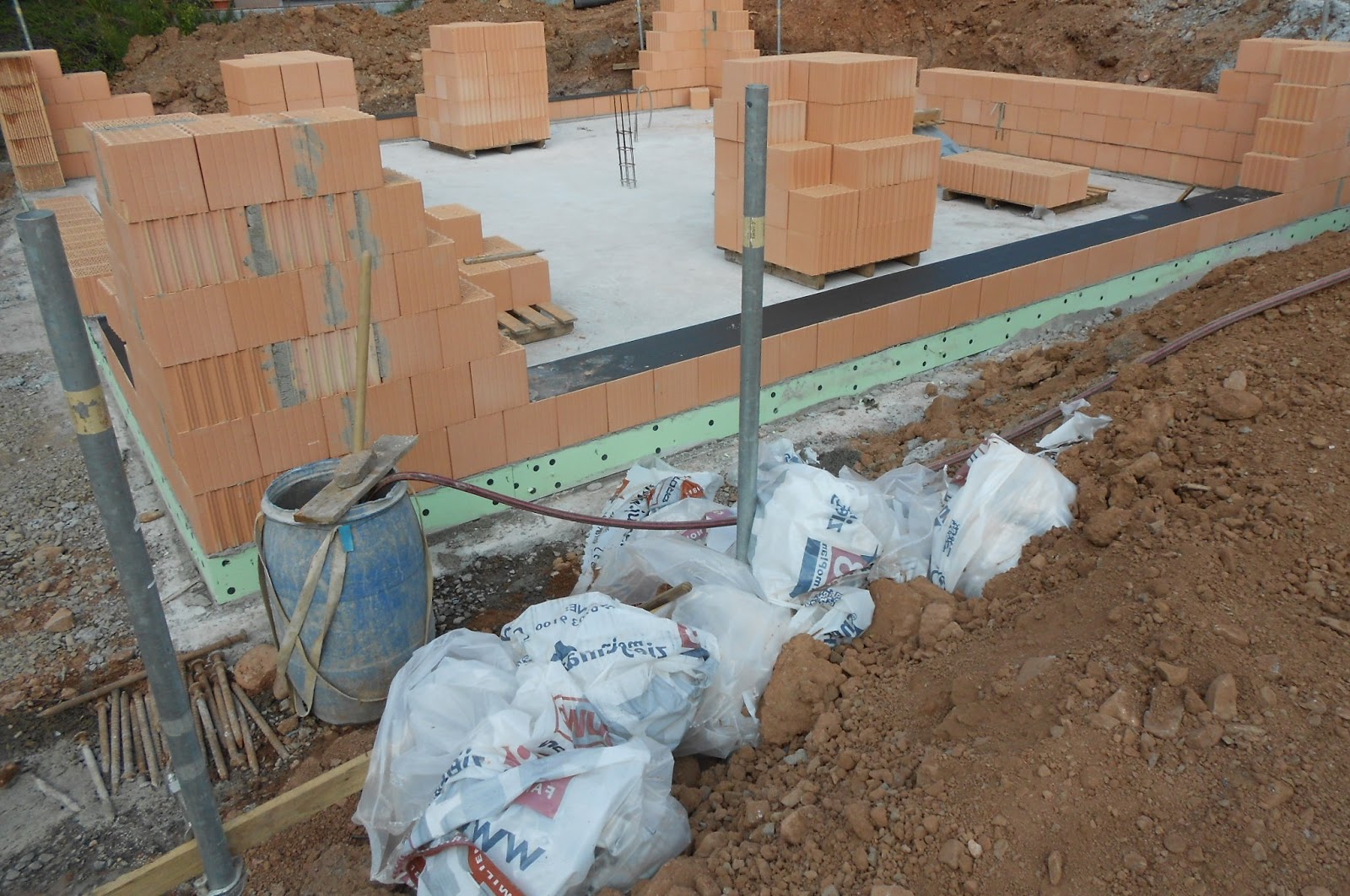Die erste reihe der der mauer ist die wichtigste diese muss genau ausgerichtet werde damit die mauer später nicht schief wird.